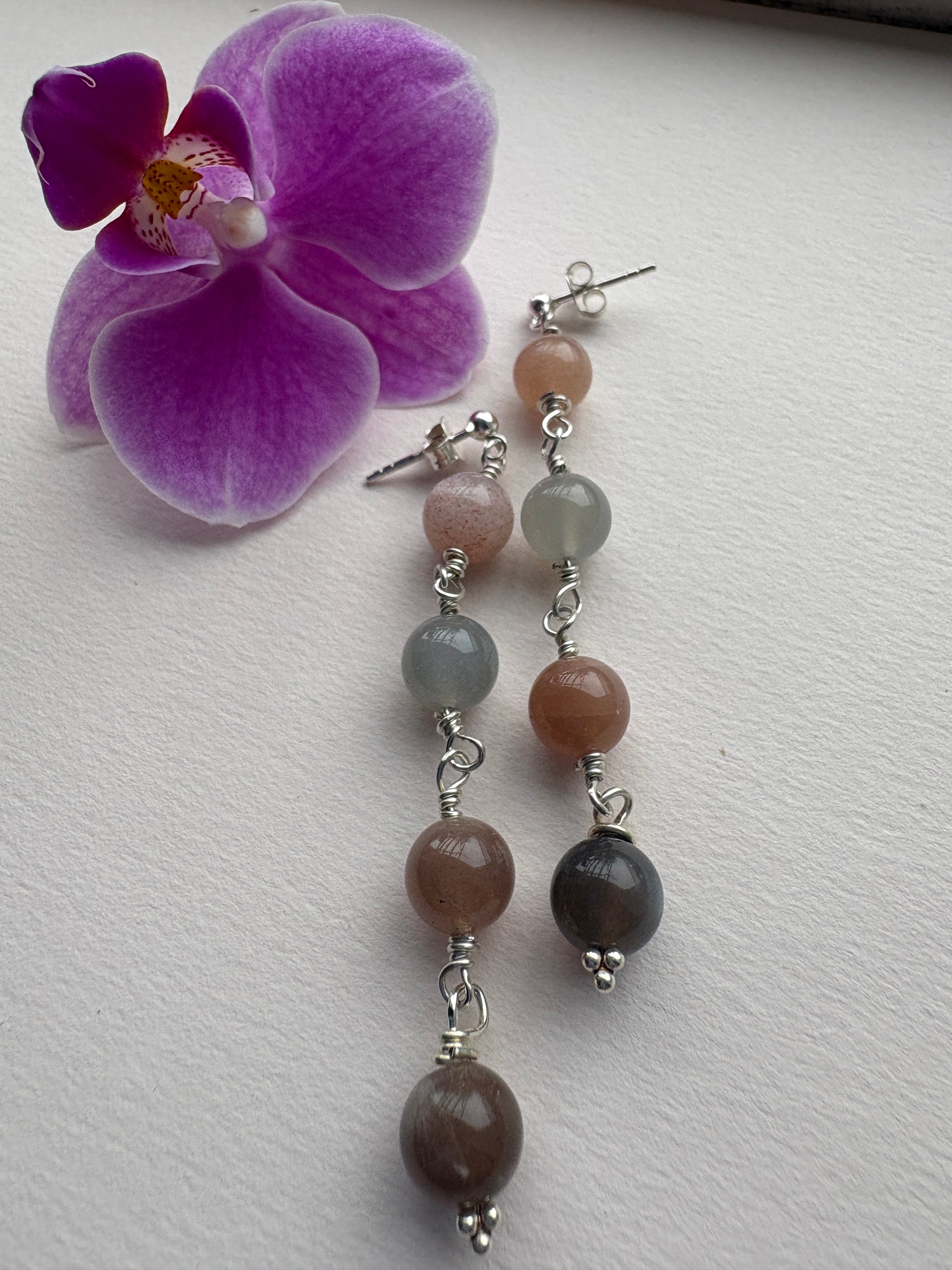 Her er det meget smukke månesten der viser deres skønhed. Øreringene er monterede på sterlingsølv ørestik.